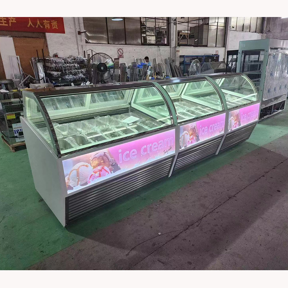 12 Flavors Double Row Stainless Steel Pans Ice Cream Display Freezer Images |